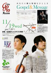 ヴァイオリンとピアノによるステキな演奏と聖書のわかりやすいメッセージをお届けします。教会に来たことがない方も、お気軽にお越しください。